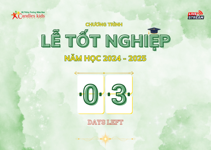 Chỉ còn ba ngày nữa thôi, tiếng trống trường mầm non Candles Kids – 3 Ngọn Nến sẽ ngân lên lần cuối dành riêng cho các bé lớp Lá. Một hồi trống khép lại hành trình đầu đời – nơi con lần đầu rời vòng tay mẹ, lần đầu cầm bút, lần đầu biết chờ đến lượt, biết xin lỗi và biết yêu thương…