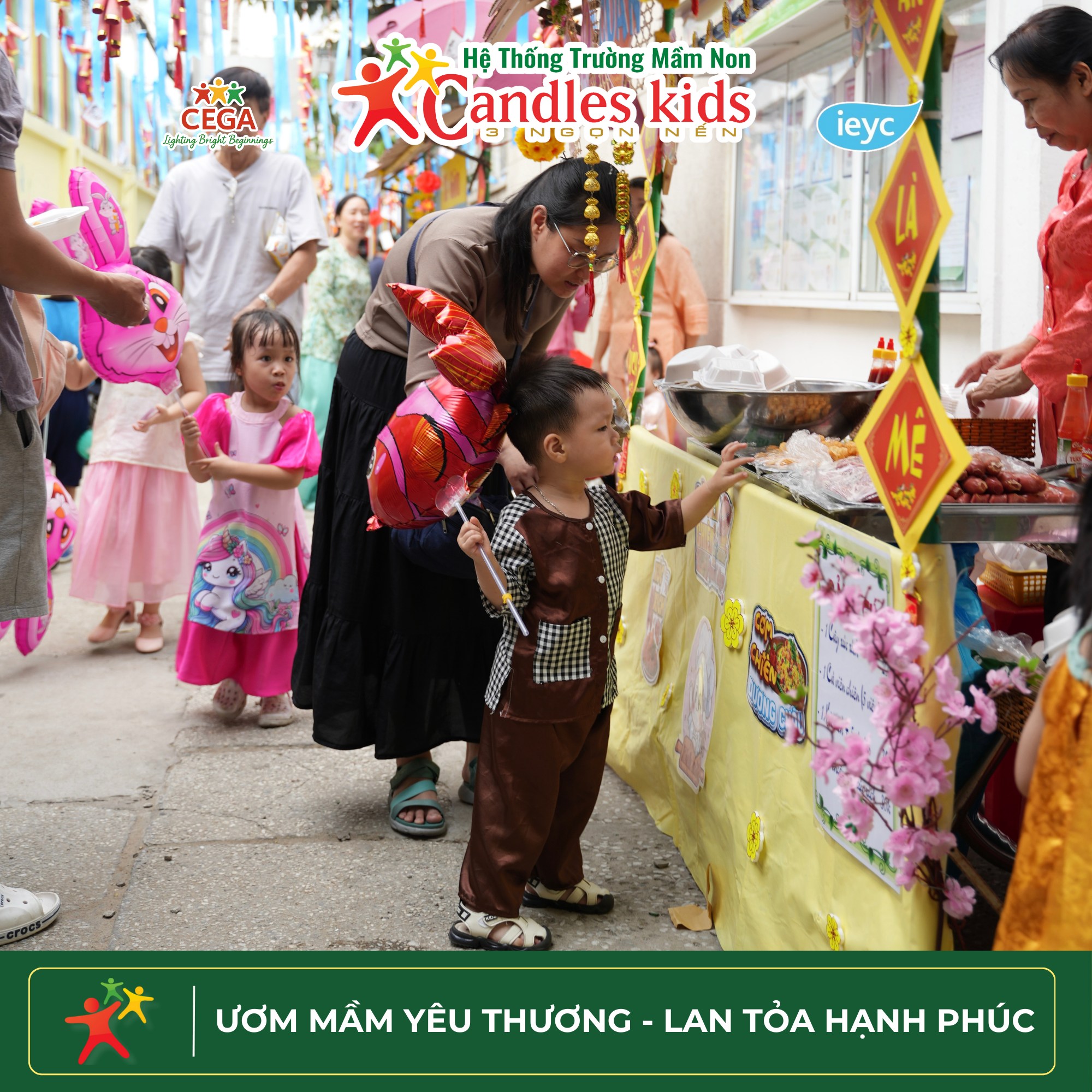 Lễ hội Tết mầm non tại Candles Kids giúp trẻ trải nghiệm văn hóa Tết Việt qua trò chơi dân gian, ẩm thực và hoạt động gia đình. Đây là cách giúp trẻ hiểu và yêu những giá trị truyền thống ngay từ nhỏ.