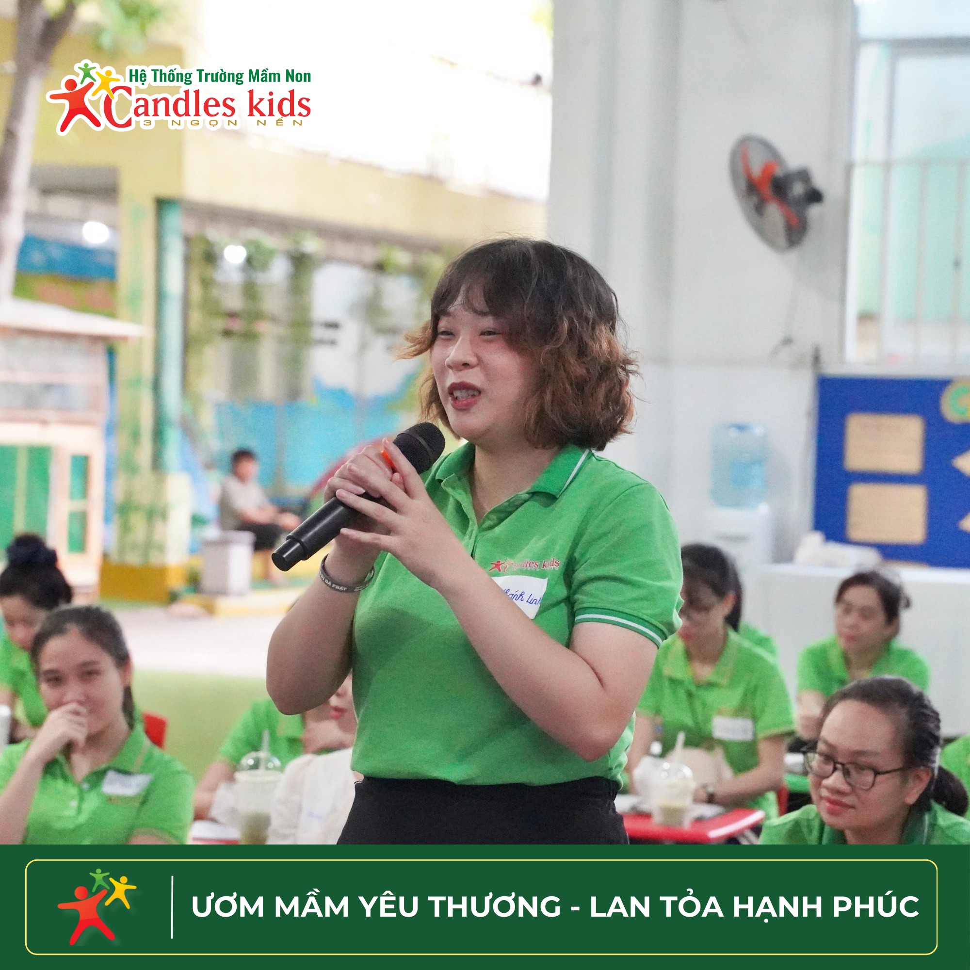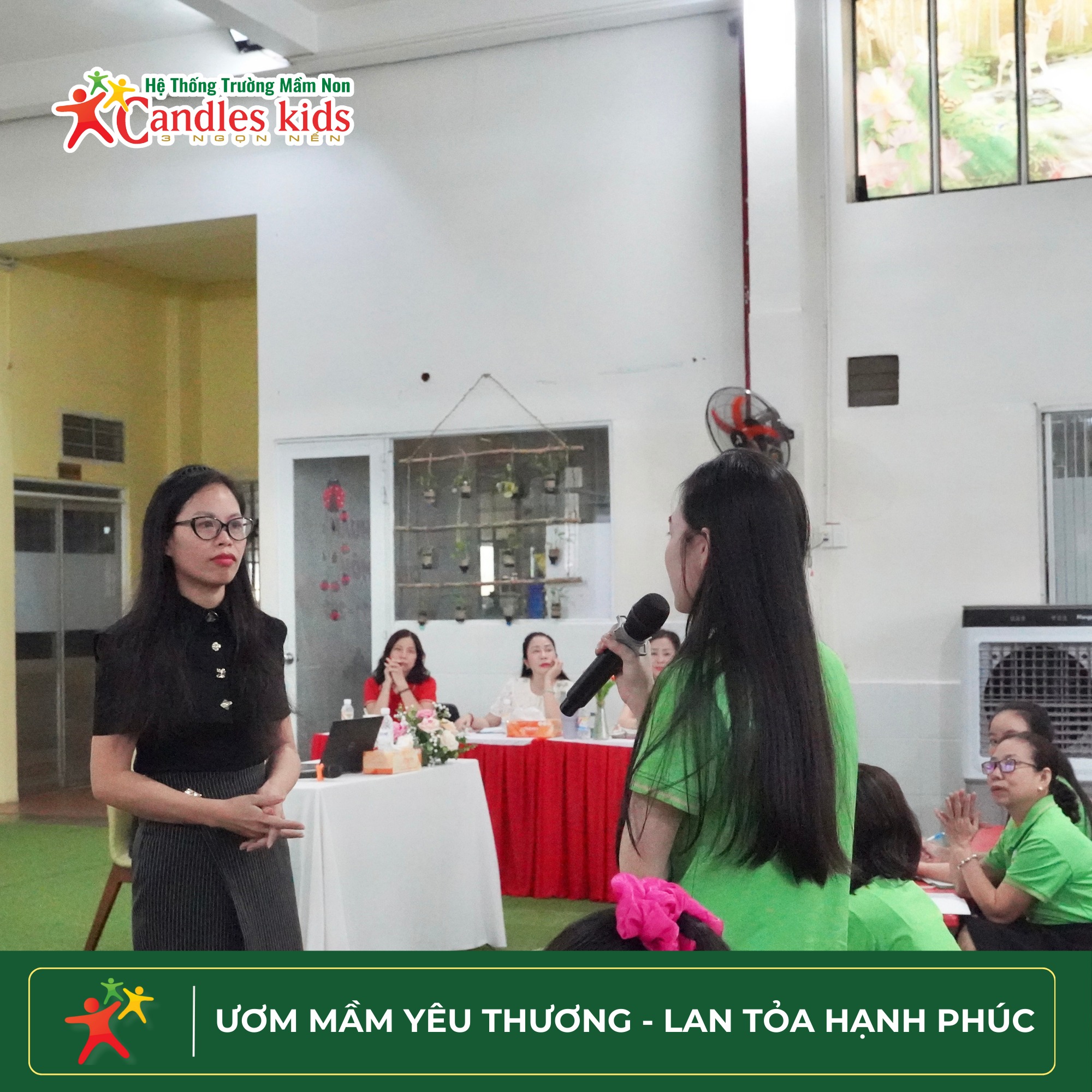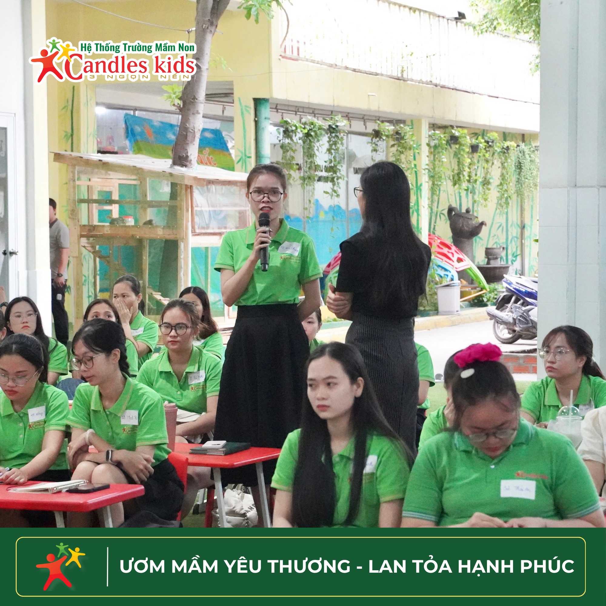Trong khuôn khổ đào tạo, giáo viên được tiếp cận và thảo luận sâu về các phương pháp hiện đại như STEAM, Reggio Emilia và dạy học theo dự án – những phương pháp lấy trẻ làm trung tâm, khuyến khích tư duy sáng tạo và khả năng khám phá tự nhiên của trẻ. Việc triển khai thống nhất các phương pháp này giúp trường mầm non Candles Kids – 3 Ngọn Nến xây dựng môi trường học tập nhất quán, nơi mỗi đứa trẻ đều được tôn trọng nhịp phát triển cá nhân.
