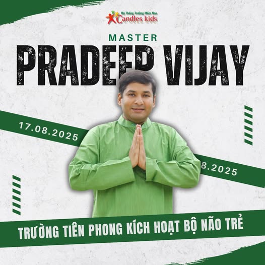 Không giảng bài. Không bảng viết. Không lời răn dạy khô khan. Chỉ là một con người bước vào mang theo sự tĩnh tại, trí tuệ sâu sắc và khả năng kết nối trái tim với trái tim. Master Pradeep Vijay, người đã đồng hành cùng hơn 30 quốc gia, từng tổ chức nhiều chương trình chữa lành tại Liên Hợp Quốc Việt Nam – sẽ lần đầu tiên có mặt tại Candles Kids – 3 Ngọn Nến.