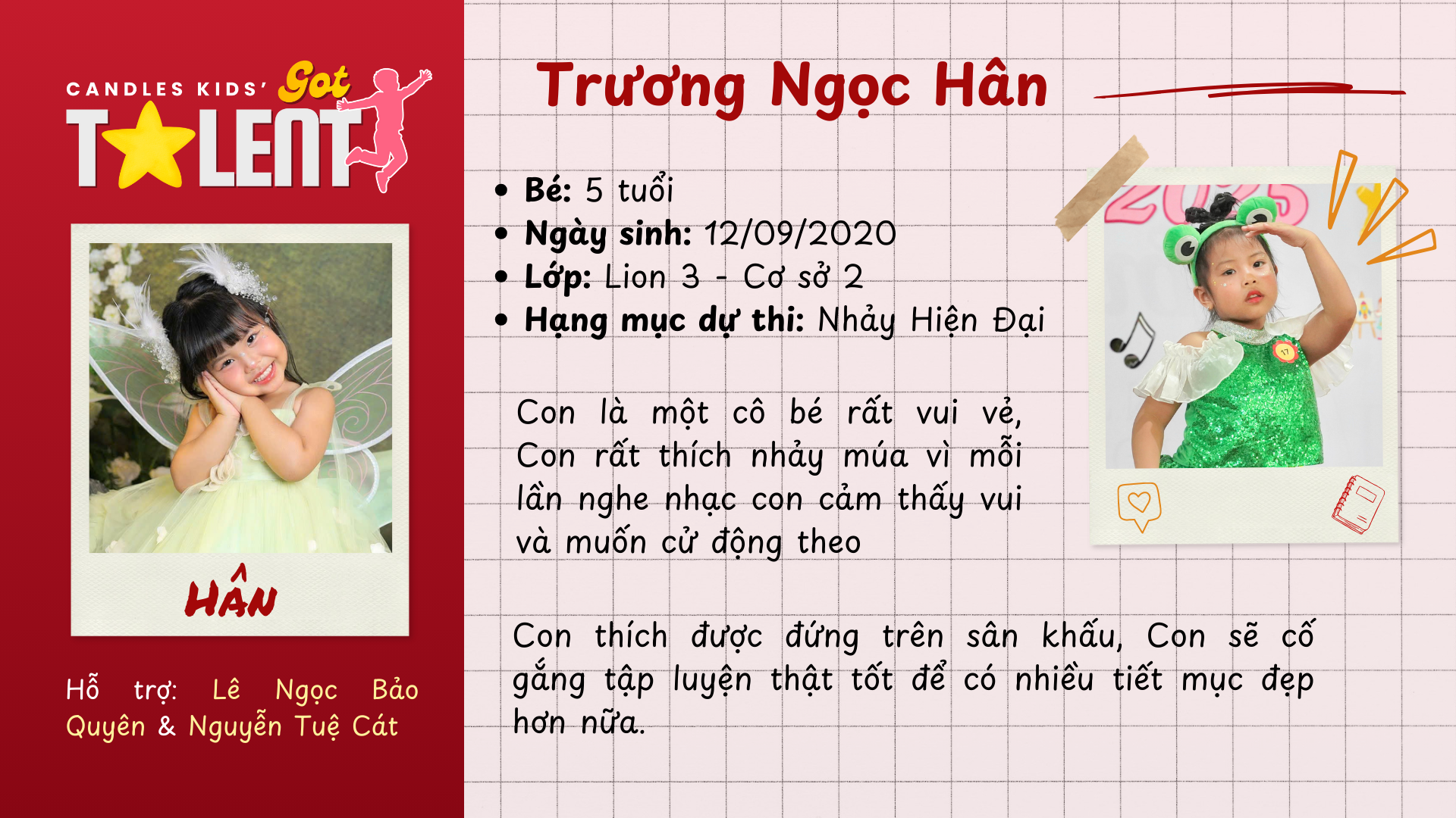 Điều đáng quý ở Hân chính là tinh thần chủ động, sự tập trung và thái độ kiên trì trong từng buổi tập. Mỗi động tác được lặp lại không chỉ để hoàn thiện kỹ thuật, mà còn giúp con học cách vượt qua thử thách và tin vào khả năng của chính mình. Trên sân khấu Candles Kids’ Got Talent 2025, nụ cười rạng rỡ và phong thái tự nhiên của Hân đã chạm đến cảm xúc của nhiều phụ huynh, giáo viên và khán giả.