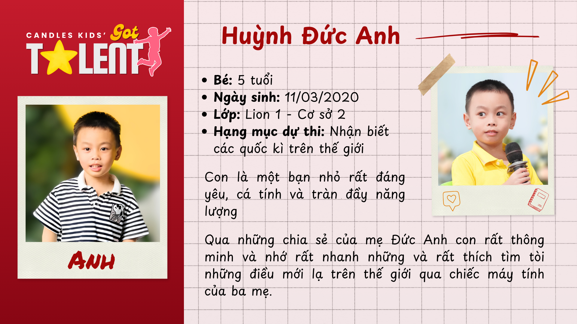 Gia nhập Candles Kids – 3 Ngọn Nến từ tháng 04/2025, Huỳnh Đức Anh nhanh chóng thể hiện khả năng ghi nhớ nổi bật cùng niềm yêu thích đặc biệt dành cho thế giới xung quanh. Không dừng lại ở những câu hỏi “vì sao” quen thuộc của trẻ nhỏ, Đức Anh bị cuốn hút bởi hình ảnh, màu sắc và ý nghĩa của các lá quốc kỳ – biểu tượng văn hóa của từng quốc gia.